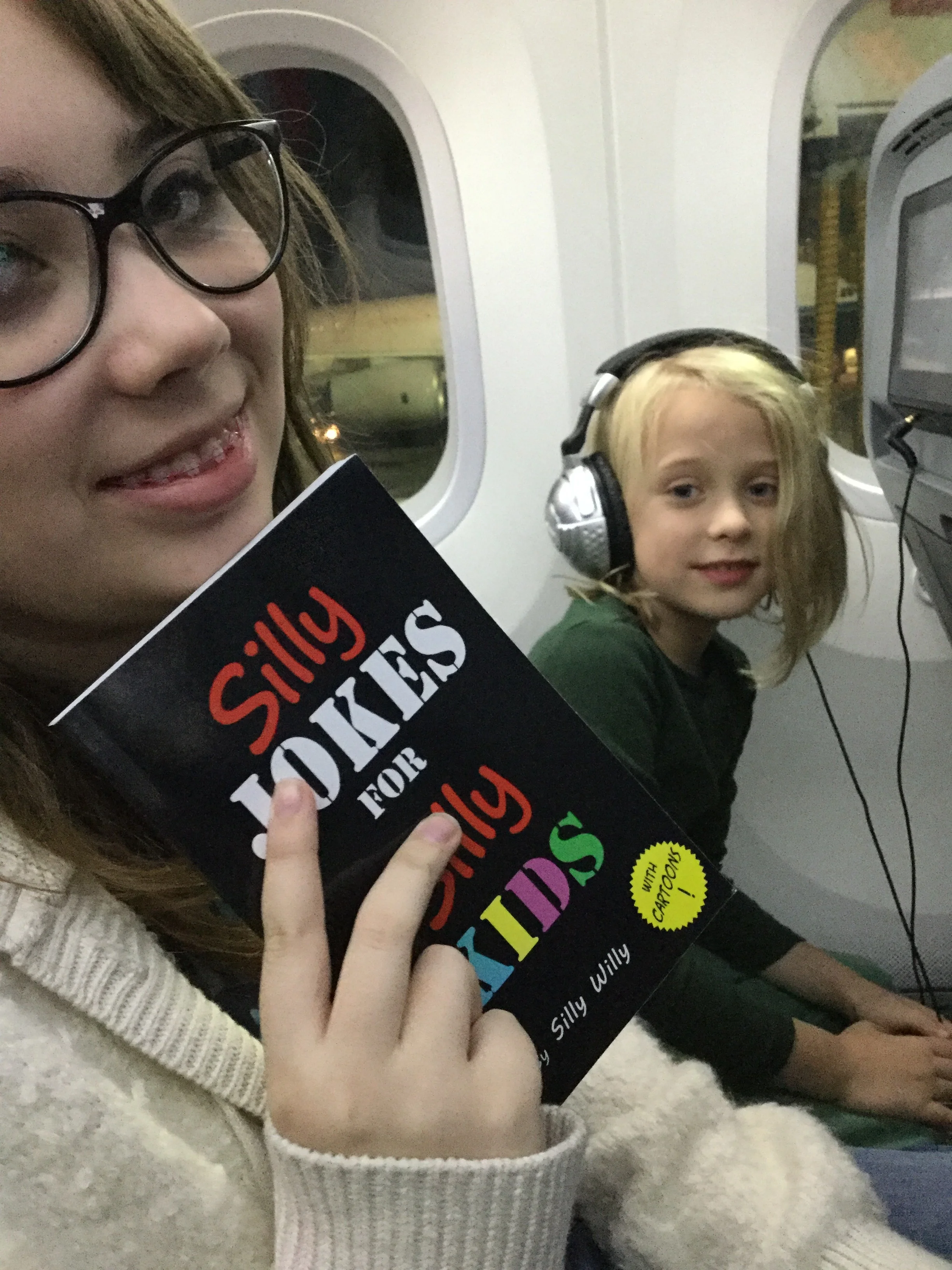 Some VERY smart Grammy gave the kids books for the plane. The joke book was a hit!
